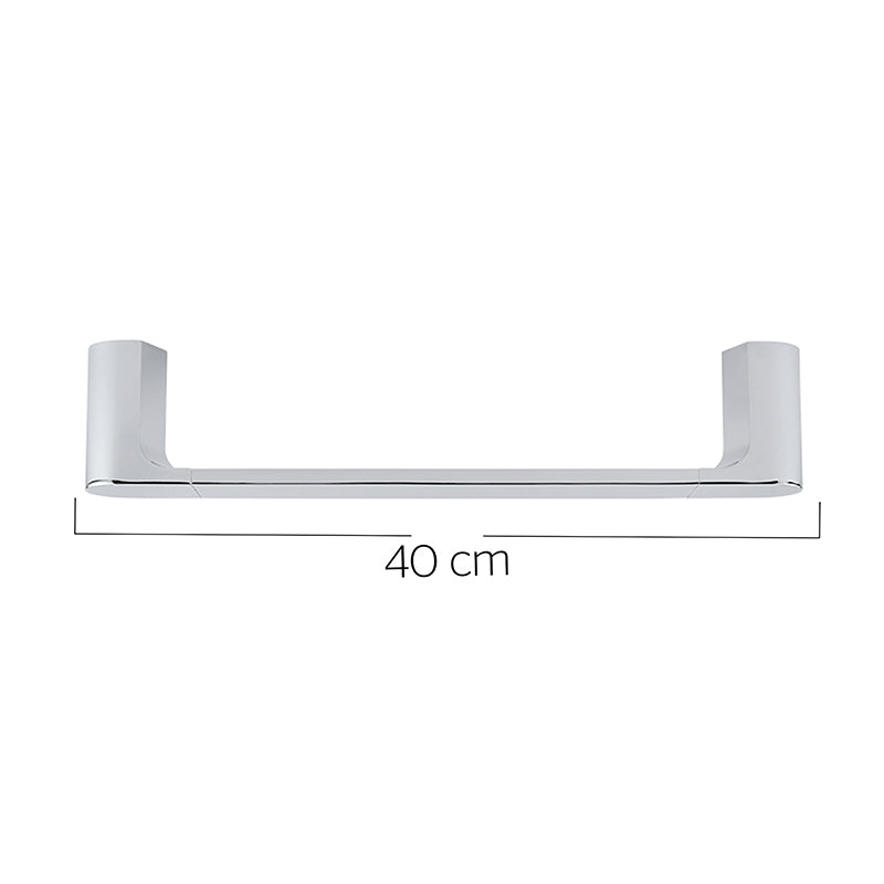 Toallero de barra corto en acabado cromo. Incluye sistema de sujeción metálico para una fácil instalación